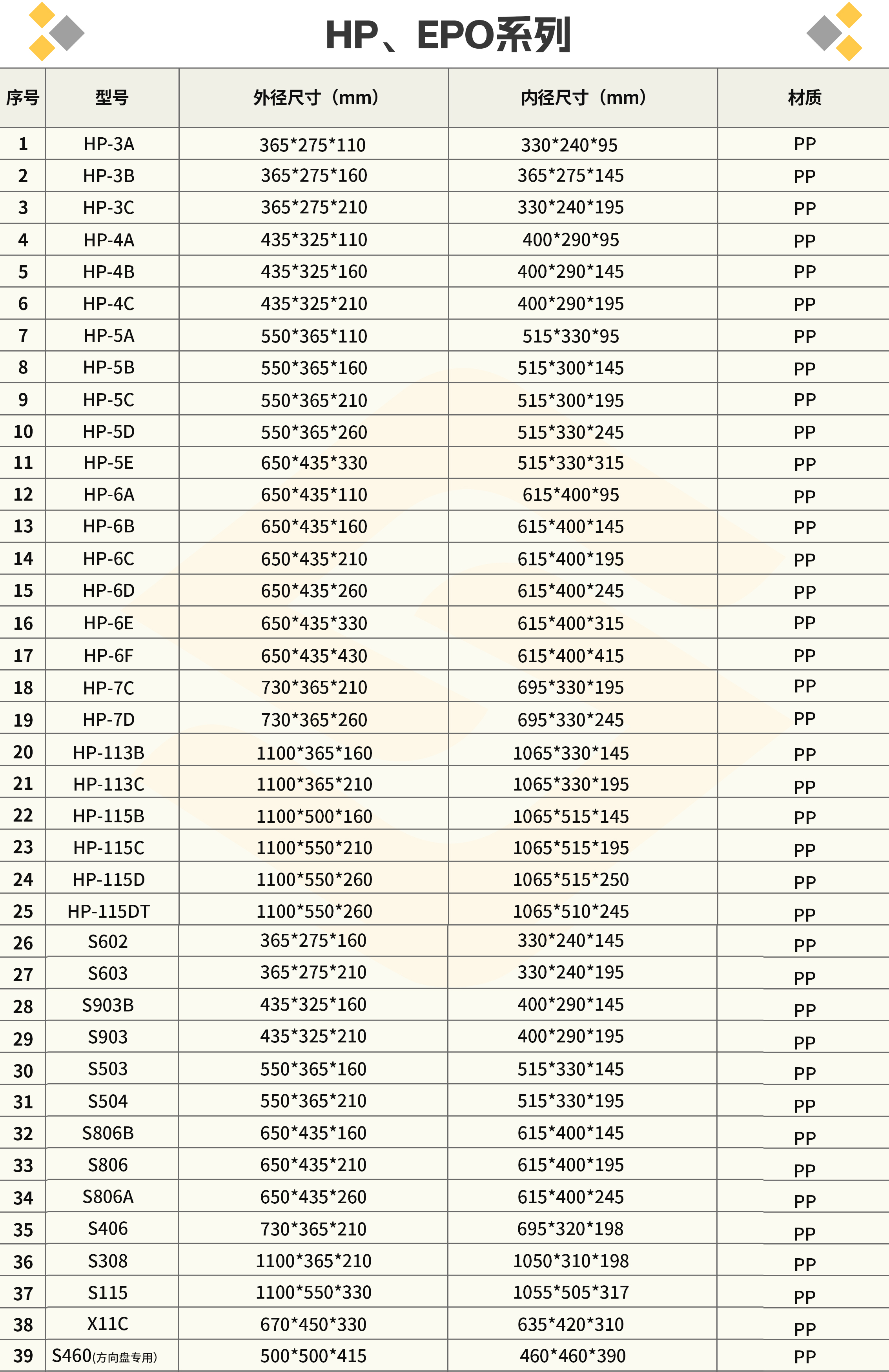 本田、日产标准箱(HP、EPO 系列)